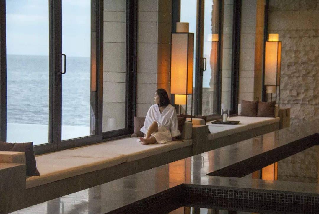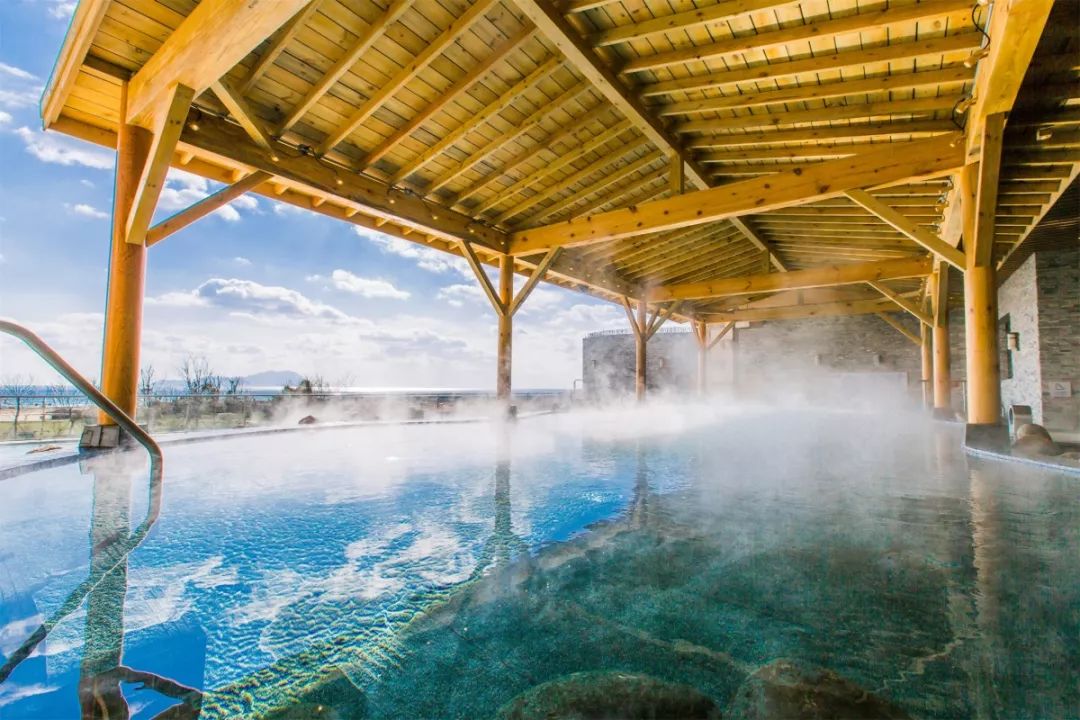 1500米深、38℃的海底温泉,水质含矿质比例与日本热海温泉、台湾绿岛朝日温泉相近,PH值为8.11,属弱碱性硫酸盐泉。置身在露天温泉池,听着潮来潮去,再品一杯阿里山乌龙茶,温暖了全身。青岛涵碧楼温泉汤池紧邻大海,可同时享受温泉滋养,观赏大海浩瀚。