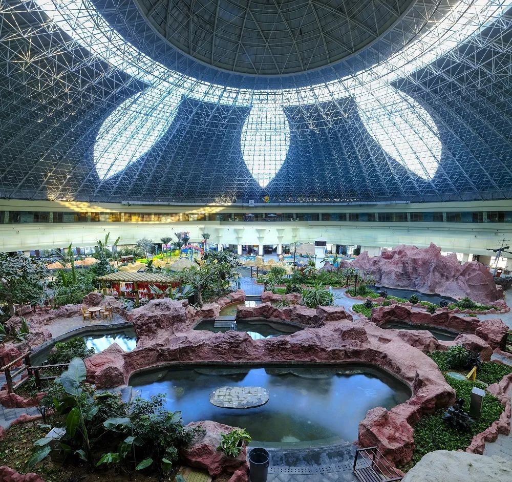 红树林汤泉中国北方日式极乐汤,馆内面积达9600平米,面朝大海坐拥灵山湾海景,派对房、儿童乐园、日料餐厅等休闲娱乐于一体。