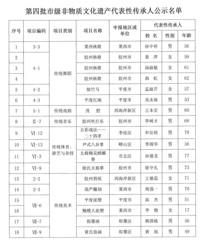 附件:第四批市级非物质文化遗产代表性传承人公示名单
