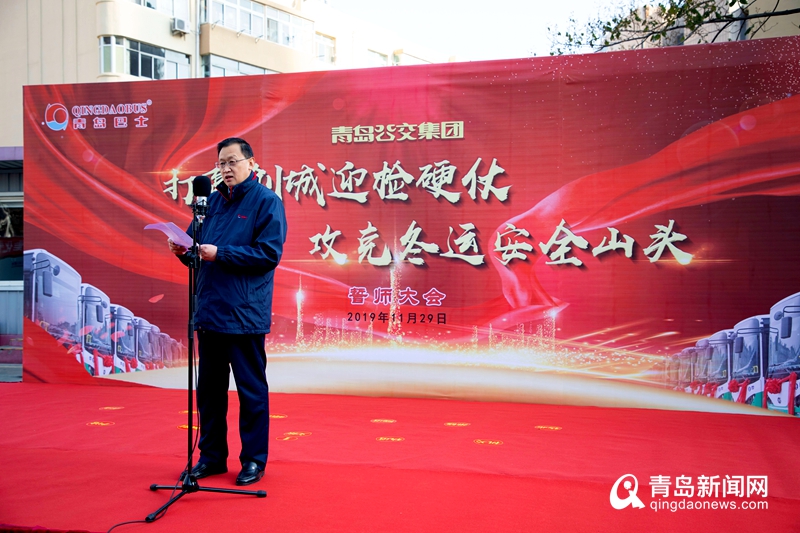 青岛新闻网11月29日讯(记者 展杨阳 通讯员 张雅雯 韩尧钰)凛冬将至,青岛公交集团下属的4300辆公交逐车全身体检、1.6万名职工变身志愿者上街服务、200余条线路根据客流特点及线路特色创新车厢服务,数百家爱心候车室更新、添置了热水器、书报架等物品……29日上午,公交集团在公交市南巴士三分公司停车场,召开“打赢创城迎检硬仗攻克冬运安全山头”誓师大会。现场,公交集团擂鼓点将,发布“六个一”动员令,明确责任、挂图作战,确保以最好面貌、最优服务迎接冬运,保障市民顺畅出行。
