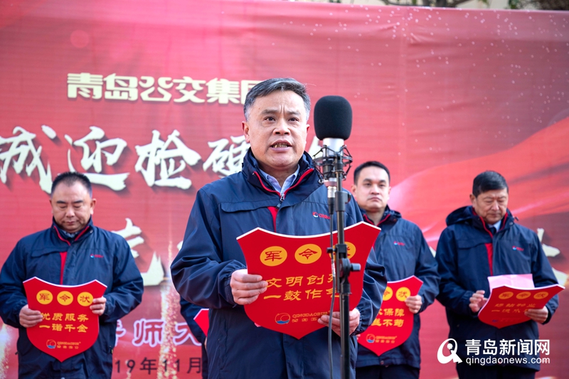 现场,公交集团党委副书记、总经理王玲宣读了《青岛公交集团打赢创城迎检硬仗攻克冬运安全山头动员令》,公交集团党委书记、董事长赵海滨为6个单位代表颁发“文明创建-一鼓作气”、“营运畅通-一马当先”、“优质服务-一诺千金”、“安全生产-一路平安”、“技术保障-一丝不苟”、“场站物业-一流水平”等“六个一”军令状。