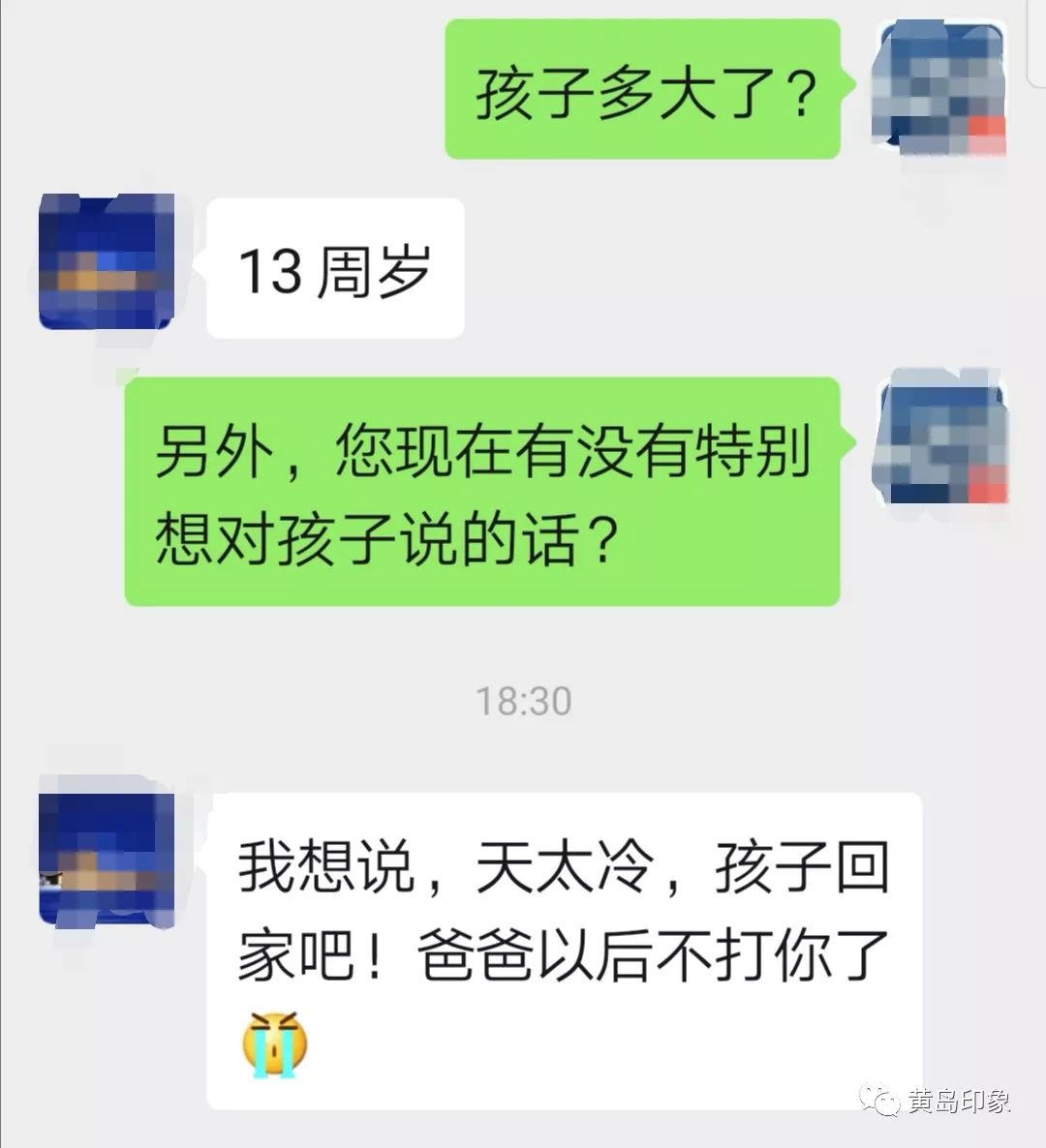 羽洁爸爸想通过黄岛印象平台对孩子说:天太冷,孩子回家吧!爸爸以后再也不打你了……