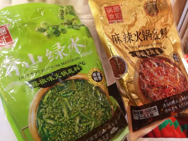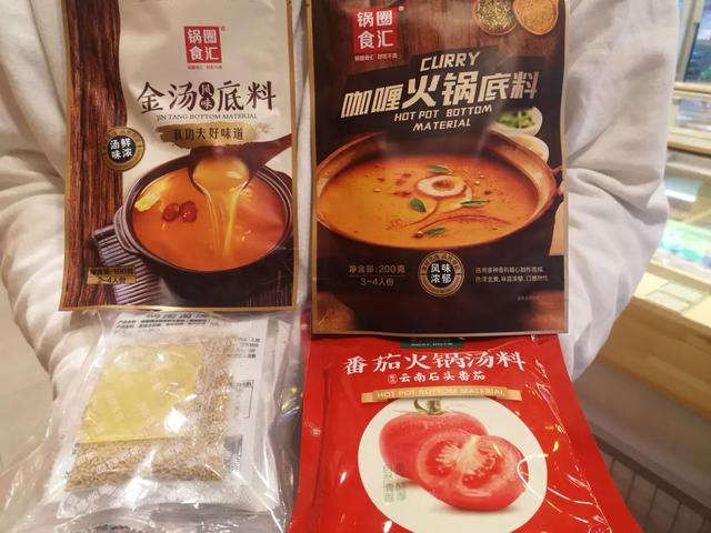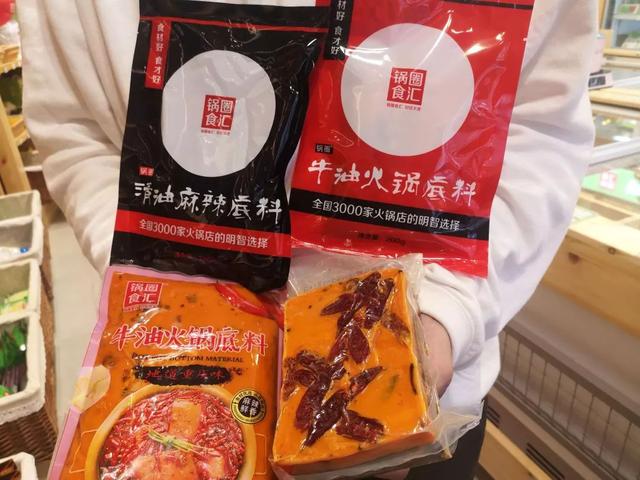 光是火锅底料就摆满了半个货架,有十几种各式各样的口味。除了常见的麻辣、红油、番茄味,还有金汤、咖喱、藤椒……价格基本都是十来块。