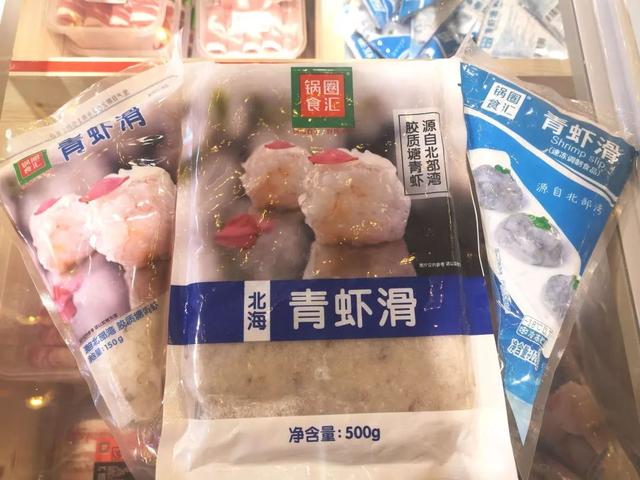 这里的虾滑分海虾和河虾,喜欢哪种口味可以随便选,三角形包装更方便下锅。