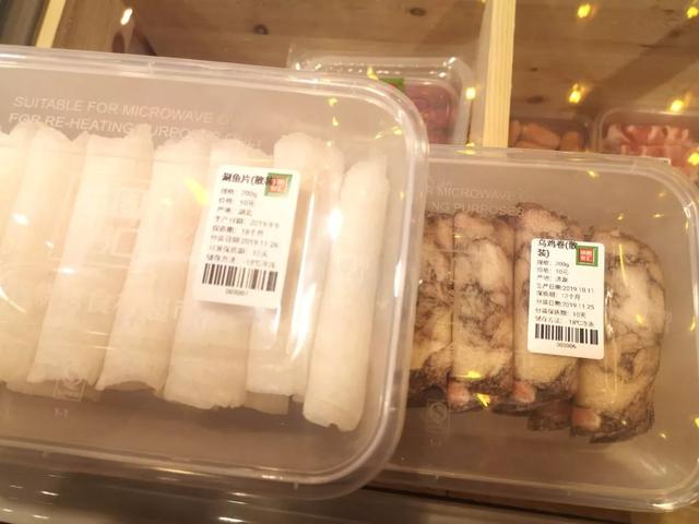 店里的火锅食材可谓是五花八门,除了常见的牛羊猪肉等,还有很多普通超市里比较少见的食材,例如乌鸡卷、涮鱼片,而且只要10块钱!