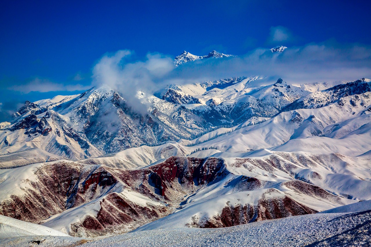 从春夏巍峨的山峰到秋冬后的静美雪山,
