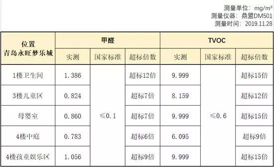 青岛永旺梦乐城甲醛含量、总有机挥发物均严重超标