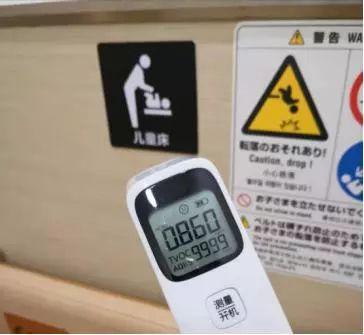 随后,记者来到青岛梦乐城母婴室,由于母婴室空间密闭,室内气味明显。手持探测测得甲醛数值为0.860 mg/m³,超国家规定值7倍;TVOC(总挥发有机物)值为9.999mg/m³,超国家规定值的15倍。