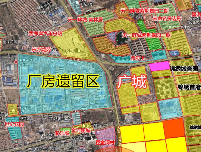 一个广城和西部的厂房遗留区,目前西海岸核心区北片区附近只有这一个厂房集中区了,再加上最后没有启动的广城片区联合开发一个综合体是十分必要的。