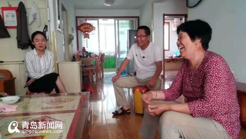 莱西市河头店镇工作人员到龙泉湖社区居民家中走访,67岁的王清香(右一)搬进南北通透的新楼房乐得合不拢嘴。