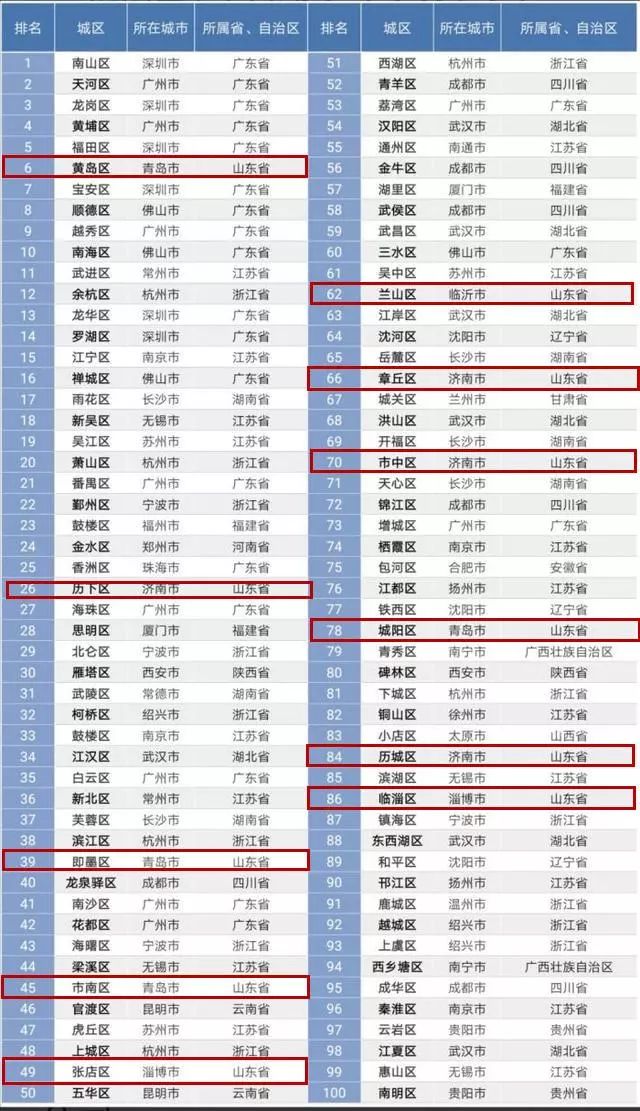 成为前二十名中唯一一个山东省的城区