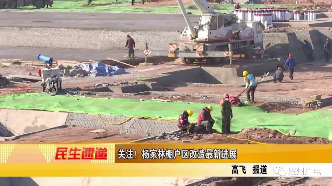 日前,记者在胶北街道杨家林棚户区改造项目施工现场看到,各种吊装塔台林立,工程施工、混凝土浇筑等大型作业车辆快速运转,工人师傅们正在进行地下一层绑扎钢筋、垫层施工等工程作业,虽然天气十分寒冷,现场却是一派热火朝天的施工场景。