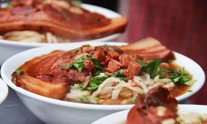 劲道的手擀面被咸淡适中浅褐色汤汁包围,酱香味浓,尝一口大肉,肥而不腻,再搭配爽口的雪里蕻小咸菜,这纯手工的手擀面与秘制大肉的完美搭配吃起来就是痛快!让人欲罢不能!