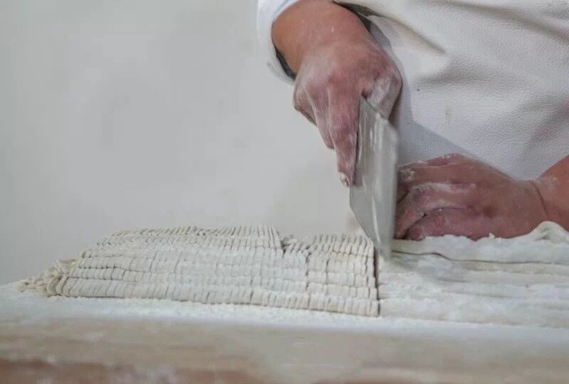 大柳面制作十分考究,根据四季不同,面的调制比例也不相同。其中,最考验的是刀工,对下刀的力度、宽窄都有要求,为的是制出“条长数尺,撒开如网,搭杆如丝,手缠成缕,疏而不乱”的大柳面。