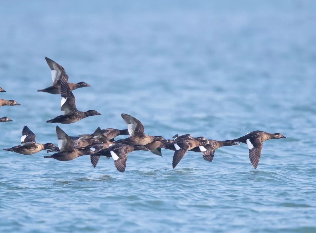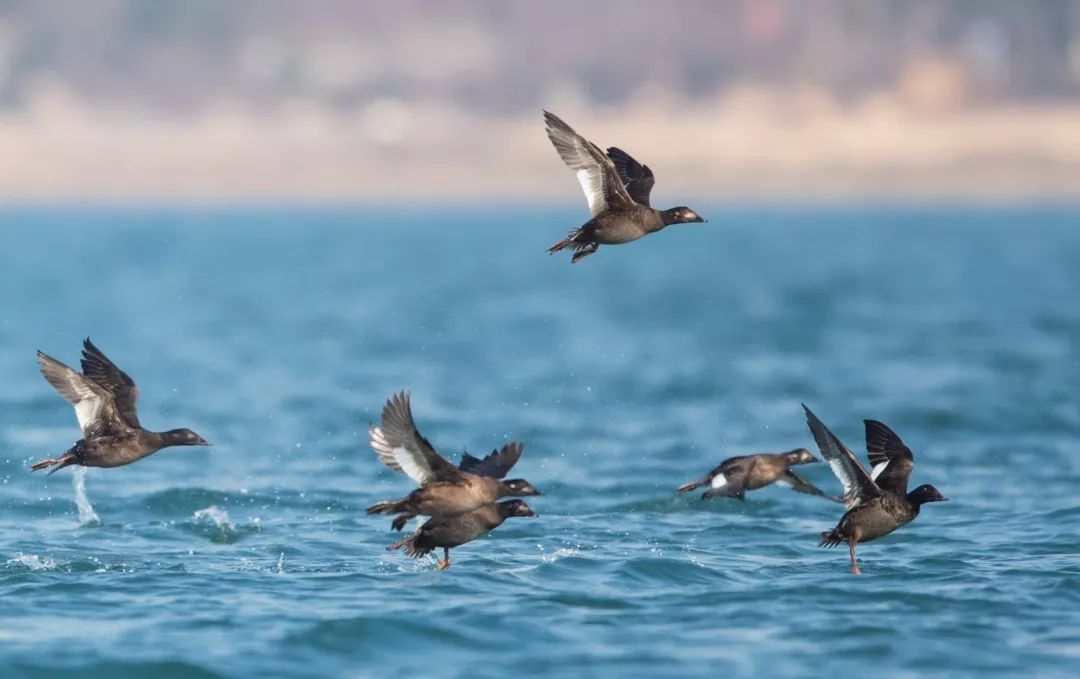 斑脸海番鸭属于雁形目鸭科海番鸭属,原先是一个亚种,今年升为独立种,斑脸海番鸭是一种中等体型,身长51—58厘米深色的矮扁型海鸭,全身黑褐色羽毛脸上有白斑,翼镜也是白色的,属于潜水鸭类。斑脸海番鸭是《世界自然保护联盟》濒危物种红色名录—易危(VU)物种,在我国大兴安岭以北地区至西伯利亚一带繁殖,大部分地区是罕见鸟种。斑脸海番鸭从西伯利亚一路南下,沿海岸线迁徙。薛琳说,这并非是第一次在青岛发现斑脸海番鸭,自2014年起,斑脸海番鸭就曾多次现身青岛。2014年的12月25日,青岛第一次在棘洪滩水库记录到6只斑脸海番鸭;2015年11月底唐岛湾有一次记录;2016年12月棘洪滩水库再次记录到两只;2018年12月,胶州湾湿地和唐岛湾都有零星记录。