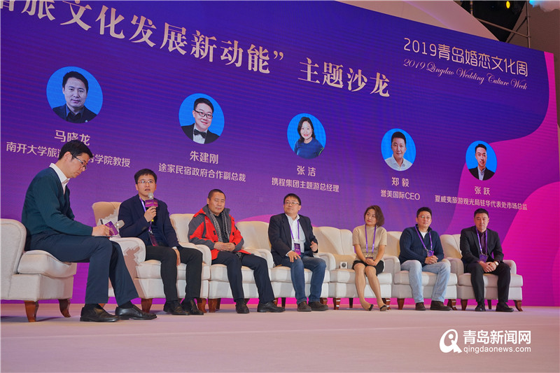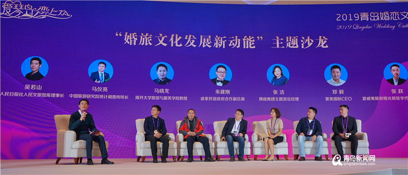 以“跨界想象力——婚旅文化发展新动能”为主题的的主题沙龙,邀请中国旅游研究院统计调查所所长马仪亮、人民日报社人民文旅智库理事长吴若山、南开大学旅游与服务学院教授马晓龙、途家民宿政府合作副总裁朱建刚、携程集团主题游总经理张洁、誉美国际CEO郑毅、夏威夷旅游观光局驻华代表处市场总监张跃,就婚旅文化产业发展新亮点、全球婚恋文化旅游目的地发展经验、产业发展痛点与挑战以及跨界发展新趋势等方面展开了深入的座谈研讨,并落脚于青岛婚恋目的地建设,多角度助力青岛婚恋产业升级。