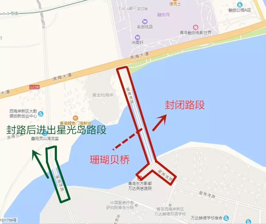 ✪交通管制区域珊瑚贝桥-星海湾路金球路路口;珊瑚贝桥-金帆路金贝壳路路口。