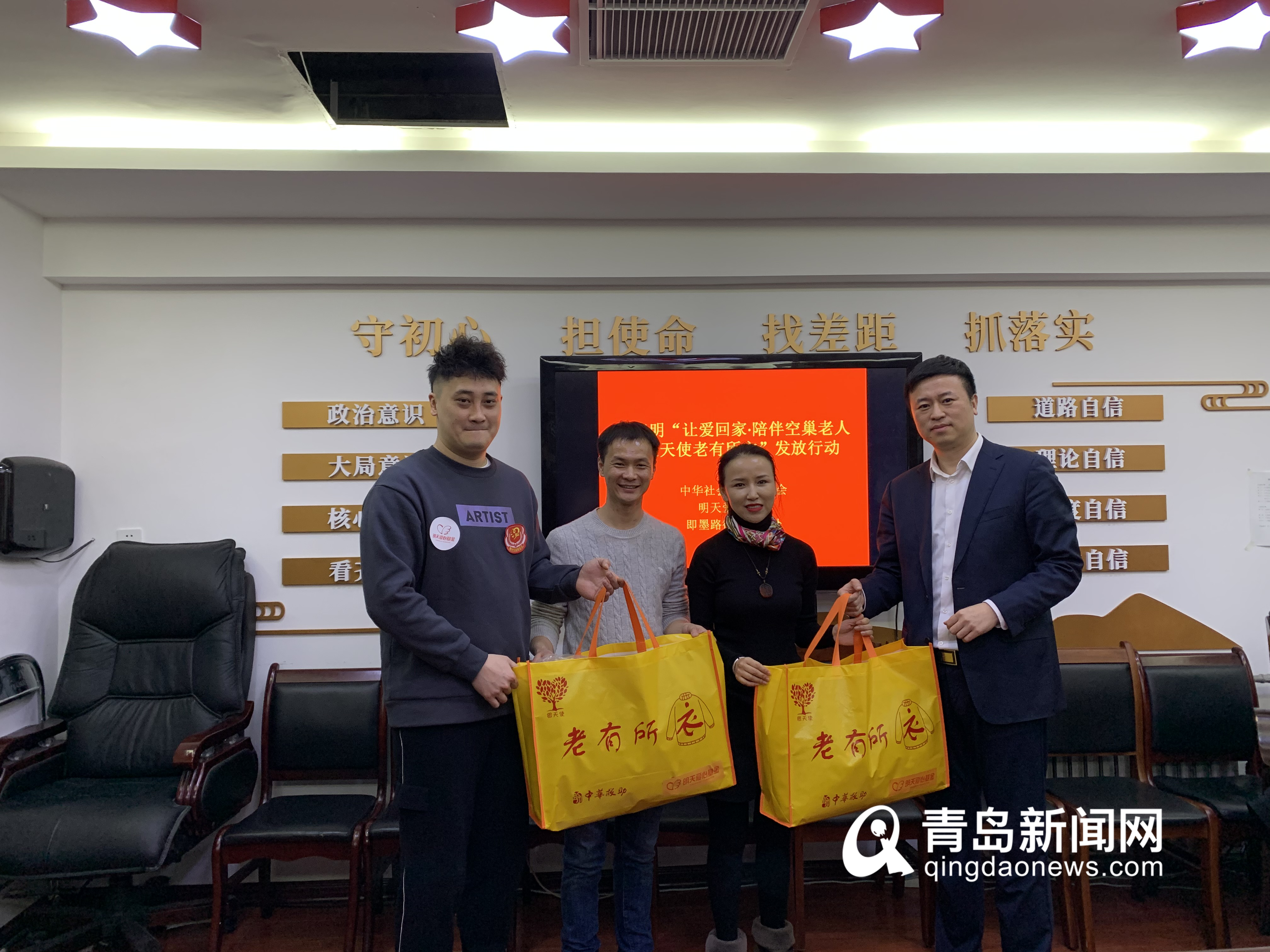 青岛新闻网12月25日讯 12月25日上午,黄晓明“让爱回家·陪伴空巢老人暨银天使老有所衣”发放行动在即墨路街道办事处正式启动,即墨路街道党工委书记张忠乾、青岛市红十字会培训救援处处长陈敏分别做了发言。即墨路街道政法委员李晓梅、基金会办公室主任陈汉霖、微尘基金会理事于志杰及街道辖区各社区书记出席启动仪式。