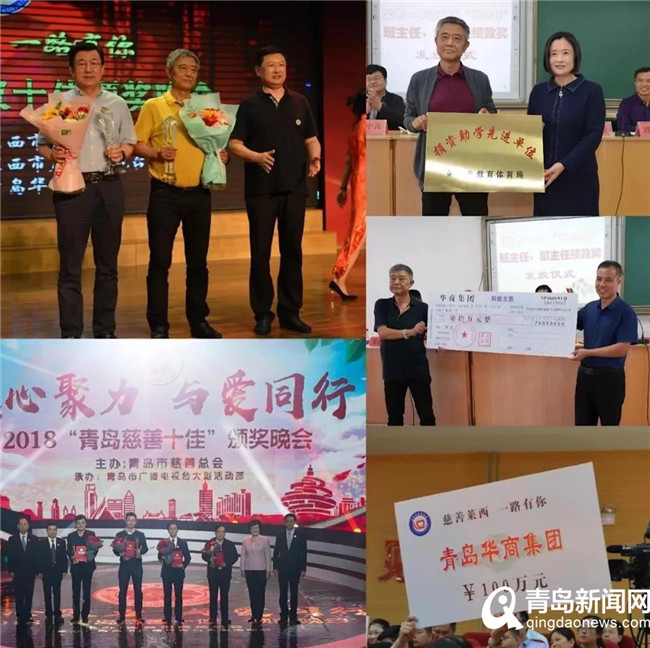 2018年,青岛华商集团先后捐赠170余万元用于各项社会救助及公益慈善事业,彰显了企业的社会责任感。近年来,青岛华商集团通过资助贫困大学生、资助贫困孤儿、助教莱西一中、资助贫困户、捐助马连庄中学、捐资扶贫等形式,累计捐款已逾600万元。公司先后获得“莱西市希望工程爱心助学先进单位”、“尊师重教先进单位”、“捐资助学先进单位”等荣誉称号。2018年6月,青岛华商集团被莱西慈善总会评为“莱西市慈善十佳单位”,董事长赵永爱被评为“莱西慈善十佳个人”,2018年12月青岛华商集团被青岛慈善总会评为“青岛市慈善十佳单位”。