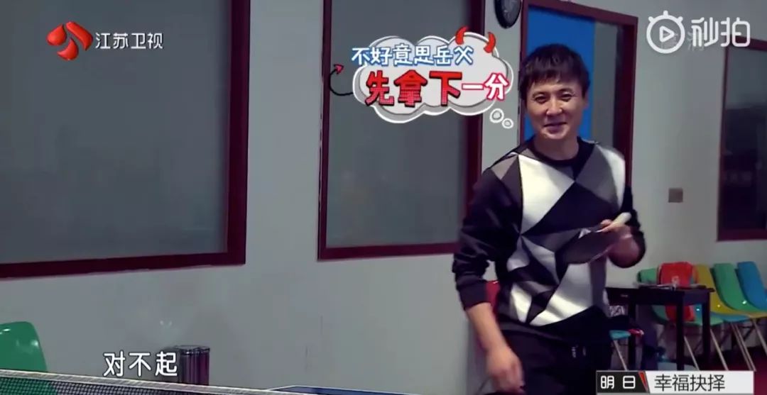 他先是陪老丈人打乒乓球,刚赢了几球,眼看丈人脸色不对,赶紧调整战术,生生地让老丈人连赢几局,高兴地像个孩子。