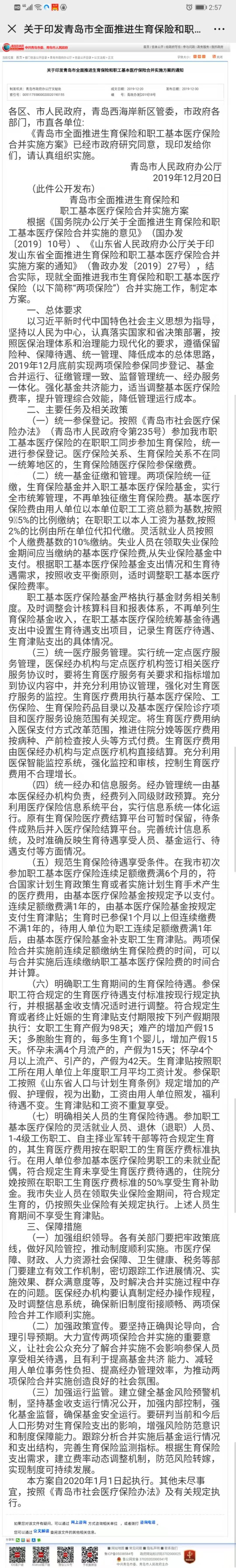 今天咱们青岛市医保局官宣《青岛市全面推进生育保险和职工基本医疗保险合并实施方案》