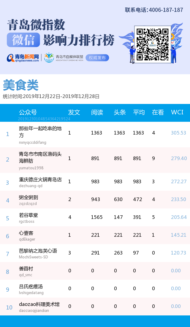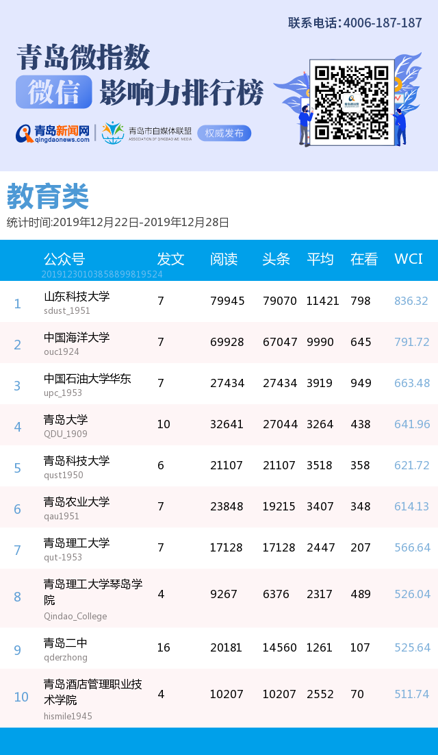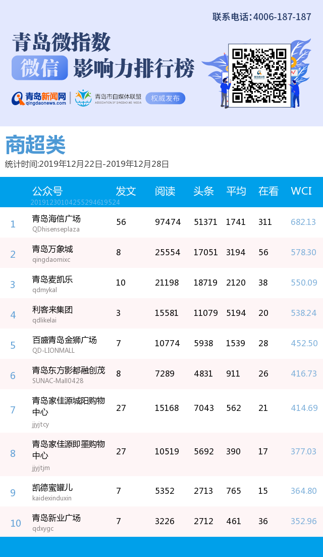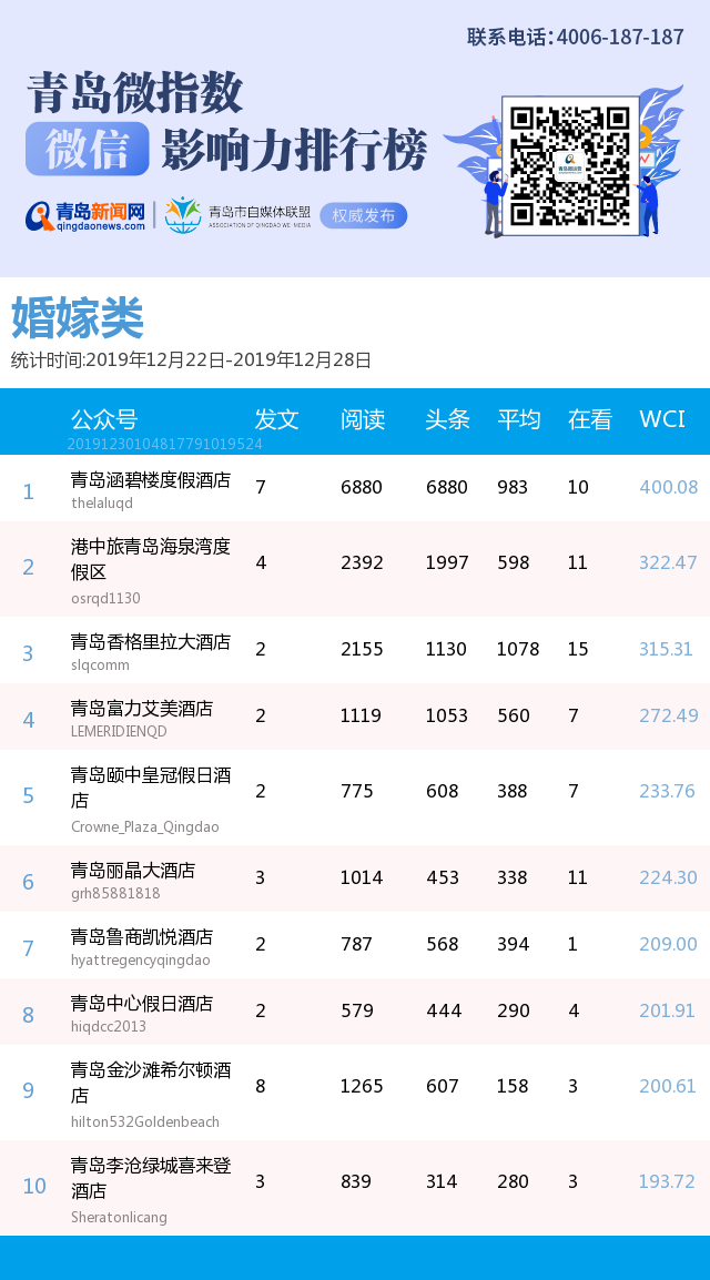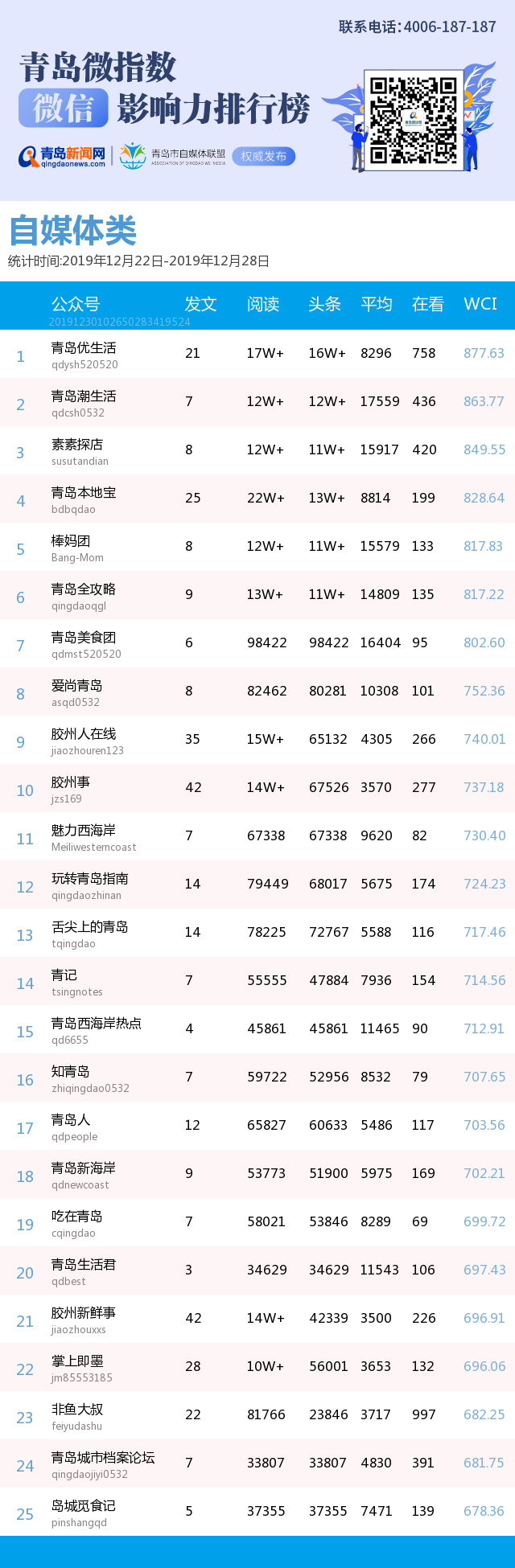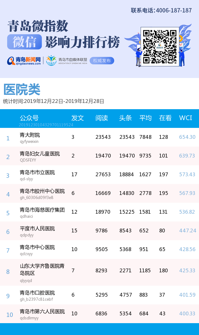 3、本次榜单收录了青岛14个行业微信公众号,如您的账号暂未收录,可联系4006-187-187。