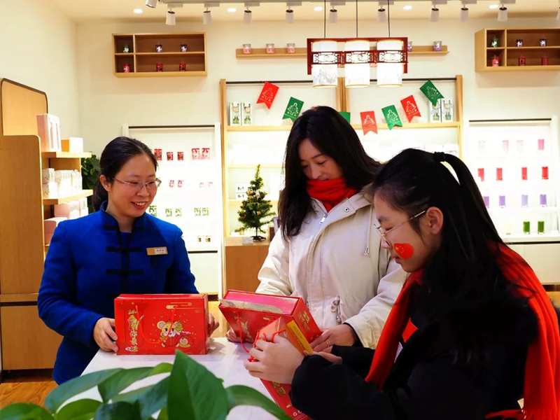 绕城跑步两圈后,参赛者们汇聚在终点——鸭绿池戏台,每人领取一张“藏宝图”,根据图上提示,到即墨古城中的店铺里寻找新年惊喜福袋。许多游客朋友也加入到了“寻宝”的队伍中,整个古城被欢声笑语笼罩。