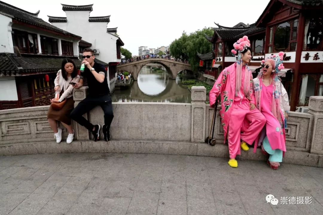 ▲ 5月22日,上海市闵行区七宝古镇,一对准新人身穿古代戏装在桥上拍摄婚纱照。