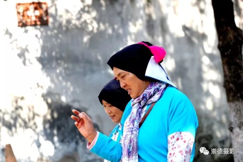 ▲ 11月16日上午,江苏省苏州市吴中区甪直古镇,一面白墙下面的阴影处,走来两位身穿江南水乡传统服装的“船娘”。