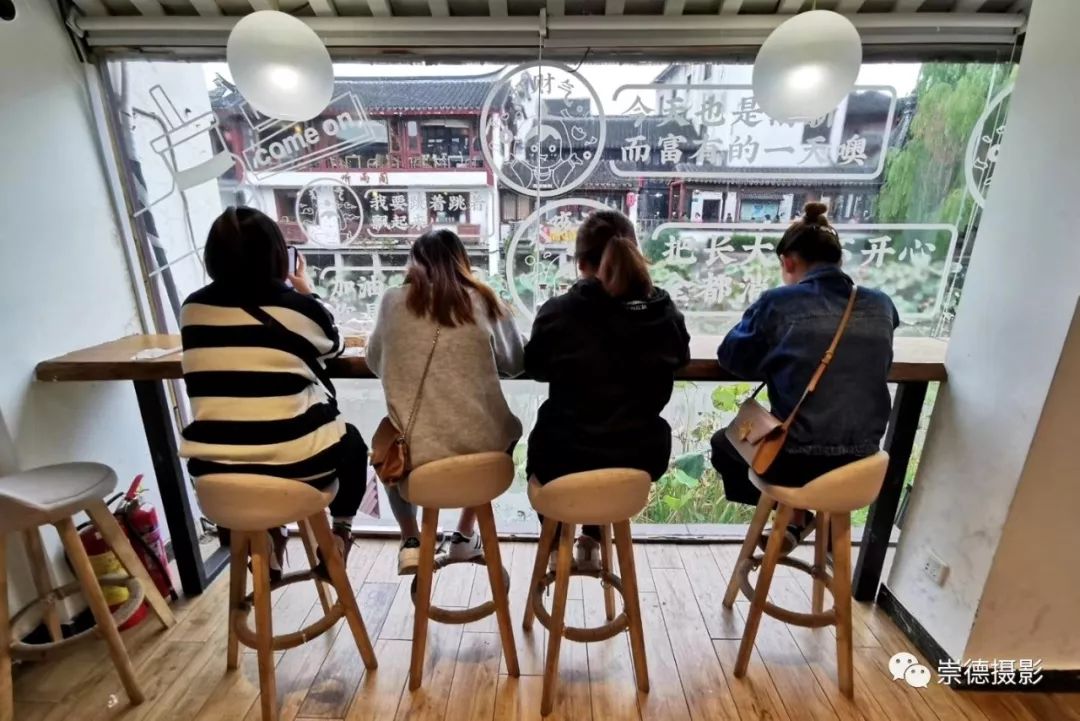 ▲ 11月12日中午,上海市闵行区七宝古镇的一家咖啡馆内,几位年轻女子坐在邻窗处品尝咖啡,为老街增添了一道时尚的风景线。