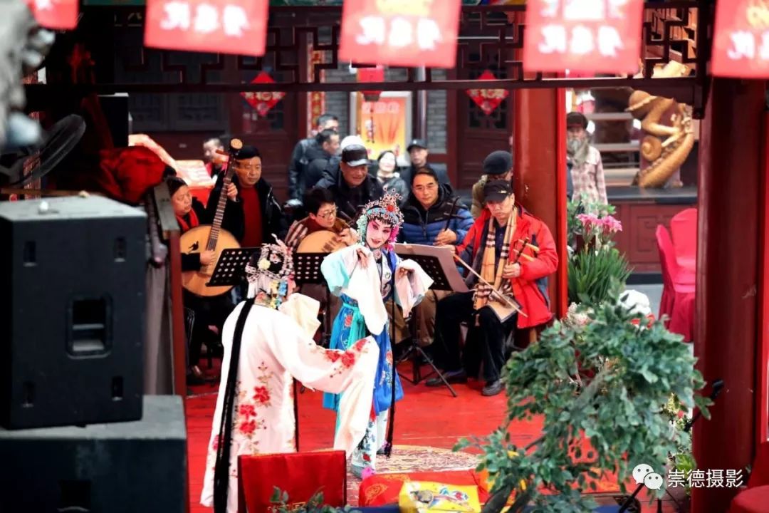▲ 2月6日,山东省青岛市劈柴院江宁会馆,舞台上正在演出地方传统戏剧,游客们在台下品小吃、看大戏中欢度春节。
