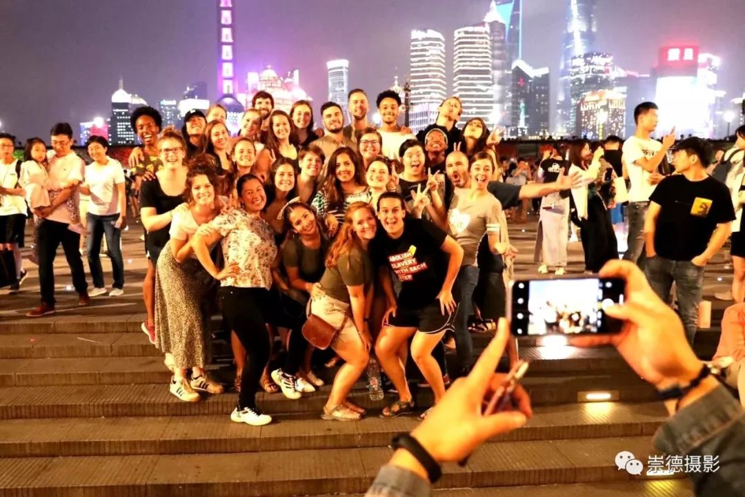 ▲ 6月22日晚,上海外滩风景区,一群老外在拍摄纪念照。
