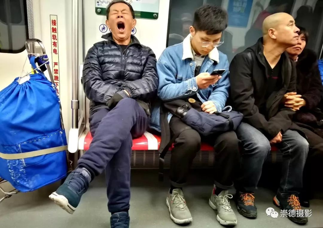 ▲ 3月7日下午,山东省青岛市地铁二号线上,一位乘客在打哈欠。