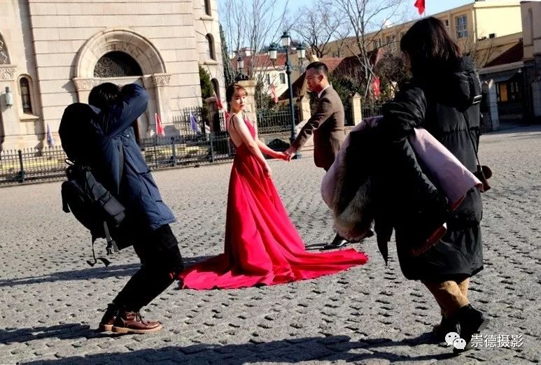 ▲12月27日上午,山东省市青岛市浙江路,一对准新人在寒风中拍摄婚纱照。
