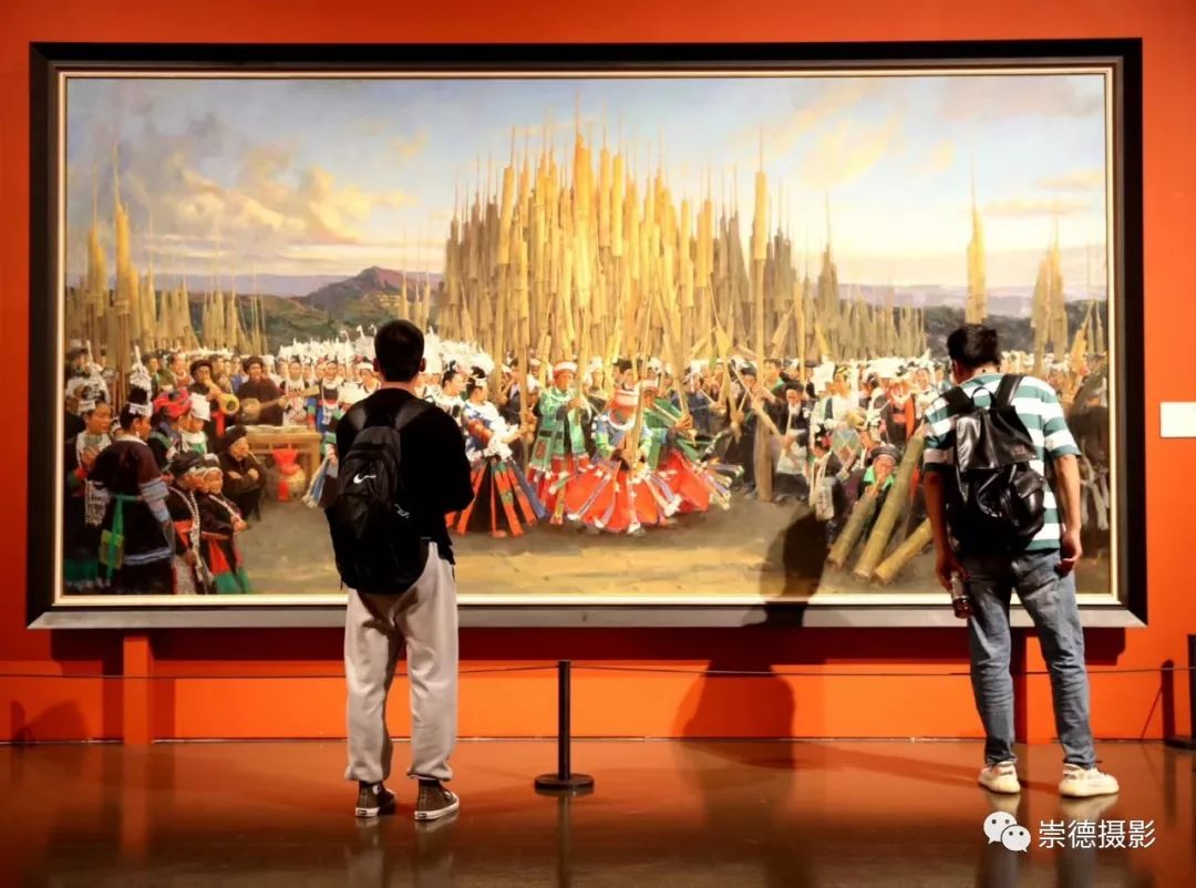 ▲ 5月22日,上海市浦东新区中华艺术宫,两位观众在观看第十二届中国艺术节全国优秀美术作品。