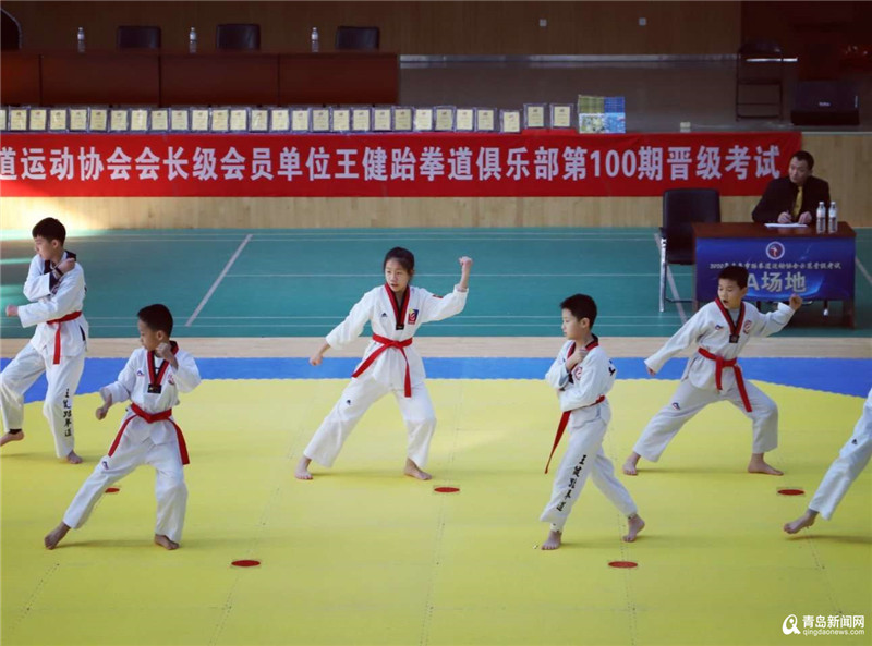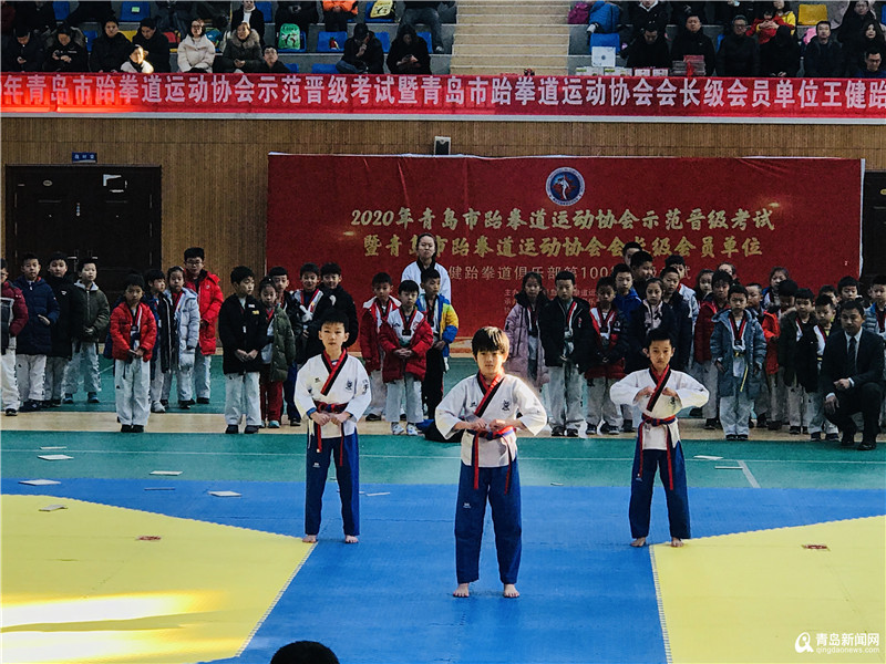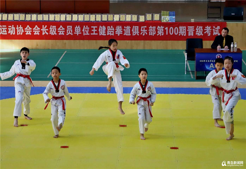 青岛新闻网1月2日讯 (记者刘文超)元旦当天,青岛市跆拳道运动协会在青岛三十九中徐殿平柔道馆举行2020年协会示范晋级考试暨会长级会员单位——王健跆拳道俱乐部第100期晋级考试。本次升级考试有近200位跆拳道学员参加考试,参加考试的学员均来自王健跆拳道馆鼎城道馆、鼎都道馆、高新区道馆、城阳道馆四家分馆的学员,其中最小年龄5岁,最大14岁。升级内容分为基本手部动作、品势、腿法、击破、体能,五项内容进行。