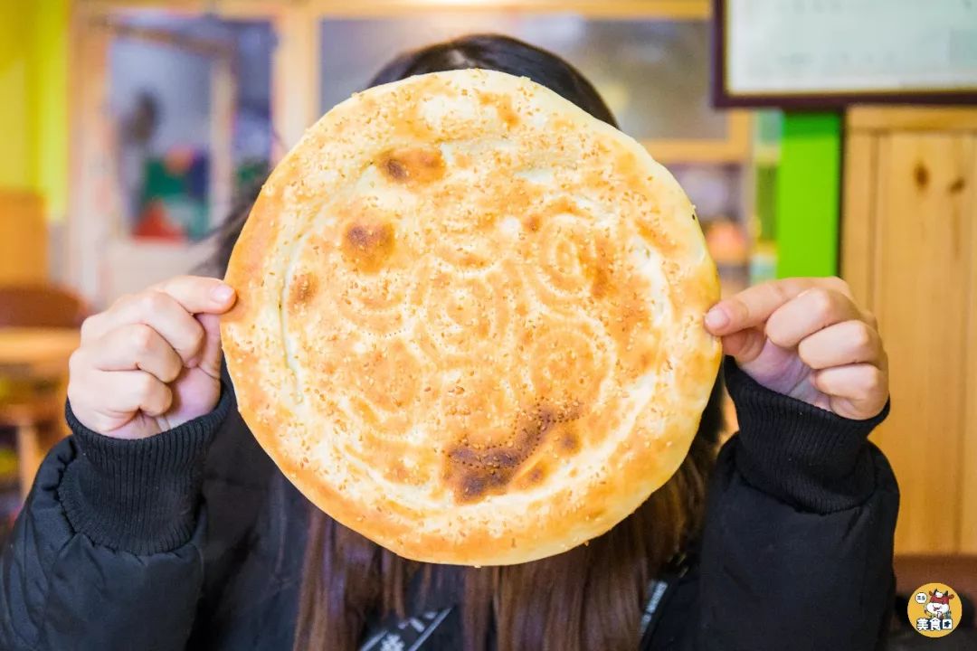 还有这个比脸都大的白馕,烤的酥酥脆脆,咸香口味,放到汤里泡着吃别有一番滋味。