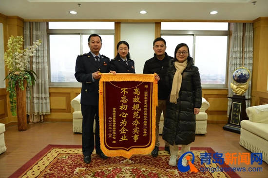 青岛新闻网1月8日讯(通讯员 孙英泰)1月7日,青岛京东昌益得贸易有限公司的李经理将一面印有“高效规范办实事不忘初心为企业”字样的锦旗和一封感谢信送到了胶州市税务局办税服务厅,感谢办税服务厅工作人员坚持以纳税人需求为导向,切实为企业办实事、办好事。