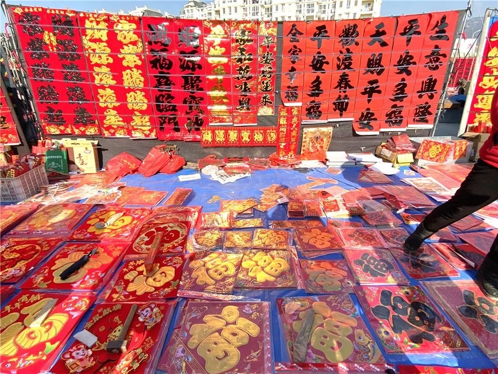 过年用的窗花、福字、对联、红灯笼等,在这里都能看到。