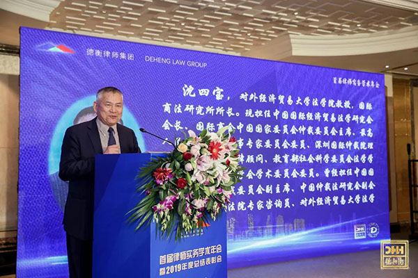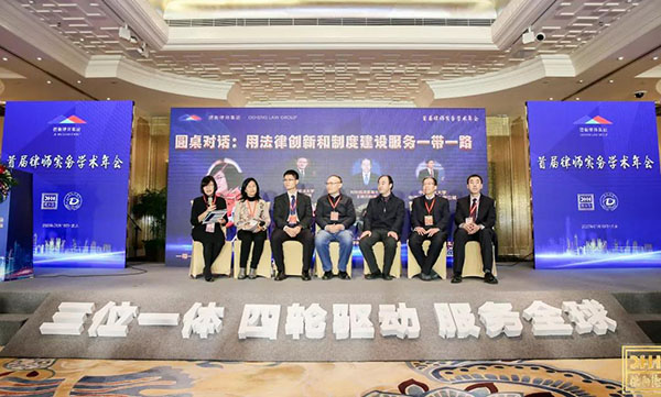 乘优良学术之风,随专家破浪前行。学术水平的提高离不开教授专家的指导与支持。在论文报告与教授点评环节之后,“学术顾问委员会成立仪式暨第一次学术会议”在集团合伙人会议执行主席胡明主持下盛大召开。为不断加深理论研究水平,用理论研究赋能律师工作实践,推进“一带一路”法律服务体系建设,德衡律师集团决定成立学术顾问委员会并郑重聘用知名法学家沈四宝教授担任委员会首席学术顾问。沈四宝教授致答谢词,对德衡律师集团合伙人会议主席栾少湖倡议举办本次学术年会予以高度评价,他表示非常乐意与众多优秀的法学家们,与2000余名德衡律师集团精英律师们一起,共同探讨,共同实践。中国人民大学副院长杜焕芳教授和对外经贸法学院黄勇教授分别发表了主题演讲。紧随其后又开展了“用法律创新和制度建设服务‘一带一路’”圆桌对话,中国政法大学赵威教授、中国政法大学中德法学院院长谢立斌教授、对外经贸大学王晓川教授、中央财经大学蔡昌教授、大连大学法学院副院长马秋教授、北京工商大学法学院副院长俞亮教授六位法学界专家汇聚一堂,在中国政法大学一带一路研究院张丽英院长的主持下,就“一带一路”法律服务机遇与挑战的相关问题深入交换了意见。六位法学大家整个对话妙语频出,为在场嘉宾贡献了一场智慧与思考的盛宴,引发全场的热烈讨论和深邃思考,当沈四宝教授与20余位法学家共同揭起“‘一带一路’法学家论坛”成立牌匾之时,实务学术年会的氛围推向了高潮。