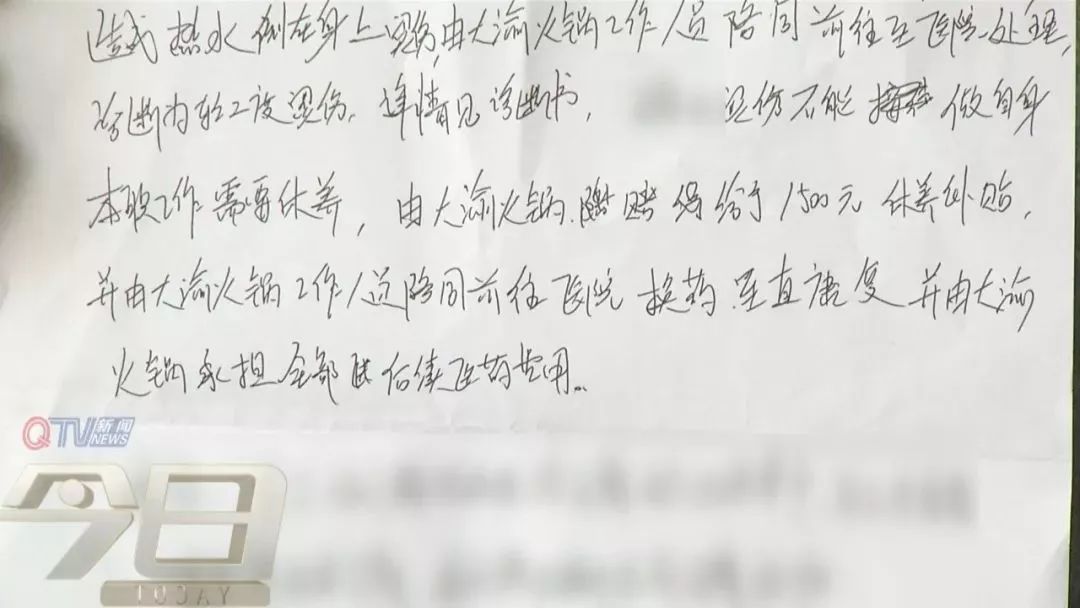 协议内容大致为由大渝火锅赔付王女士1500元休养补贴,