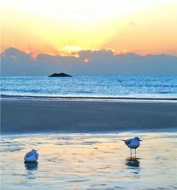 早起来到石老人海水浴场,听海浪的声音,待天际慢慢发亮继而变红,太阳从海上冉冉升起。
