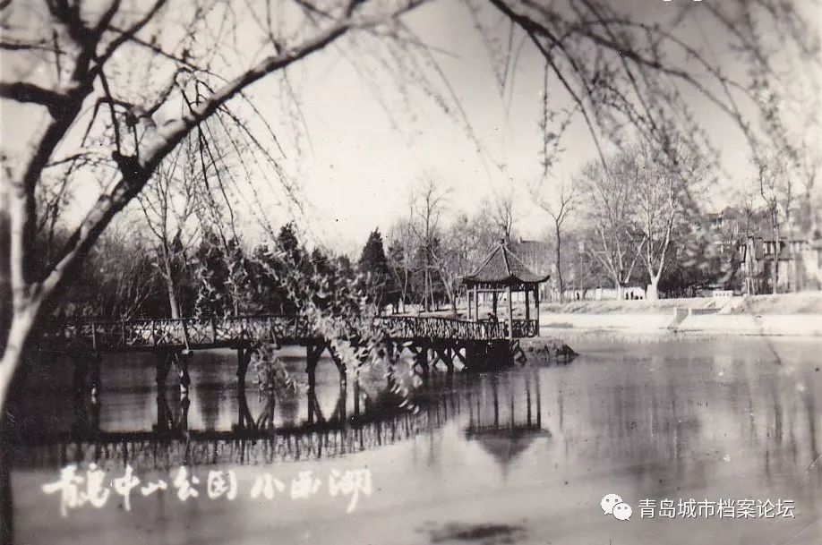 小西湖所在的中山公园在青岛建置之初本为会前村,德占胶澳后,于1901年强行收买该村并迁走渔民,将此地辟为植物试验场。此后,德国人又收买太平山、青岛山进行造林,将今天的中山公园所在地打造成以树木、果园、花木为主的公园,取名曰“森林公园”。日占时期,森林公园被改名为“旭公园”,园内的樱花大道远近闻名,此即本文开头所提的“春观樱”。1922年,北京政府收回青岛后,“旭公园”被改称为“第一公园”并于翌年在园内建造人工湖,美其名曰“小西湖”。湖上建有木曲桥和湖心亭,湖内种有荷花,成为青岛的夏日一景,此即本文开头所提的“夏赏荷”。1929年南京国民政府接收青岛,为纪念孙中山先生,将第一公园更名为“中山公园”。1930年代,中山公园添设了一些娱乐设施,其中就包括风靡一时的溜冰场,由此引出本文开头所提的“冬溜冰”。