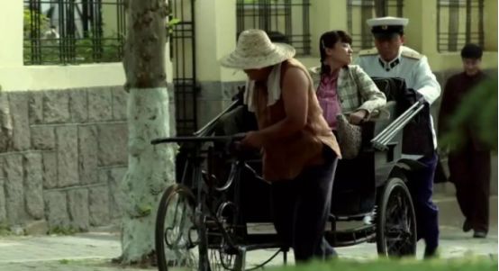 在青岛,安杰怀孕了要求坐黄包车,江德福如坐针毡,最后实在忍不住这种“剥削”,下来帮忙推车。