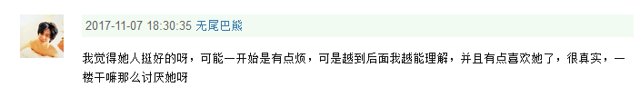 我觉得她人挺好的呀,可能一开始是有点烦,可是越到后面我越能理解,并且有点喜欢她了,很真实。