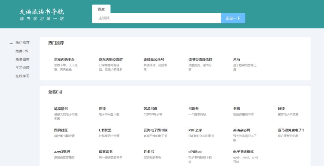 走读派不但集合了鸠摩搜书等多个搜书网站,还有一些文本格式转换(kindle必备)。可谓是站在巨人的肩膀上,一站在手,天下我有。