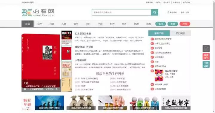 分类非常详细,涵盖文学名著、心理学、人物传记、小说、历史、经济、哲学等类型。站内会有一些精选专栏,不知道看什么的,可以在专栏里挑选一下。
