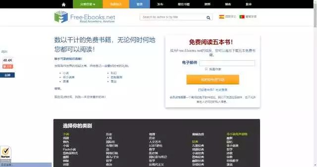 需要用电子邮箱注册成会员,才能下载。并且它有一个限制,那就是每个月只能下载5本免费电子书。