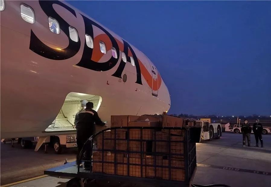 18时17分,满载党中央、国务院关怀和青岛人民深情厚谊的山航SC9001航班从青岛流亭机场启航飞往武汉,19时50分抵达武汉,当晚发放到医护人员手中。