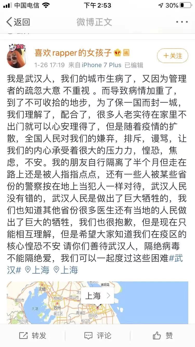 危急时刻,更需众志成城,共克时艰!非常时期,病毒才是敌人,隔离病毒不能隔离人心。
